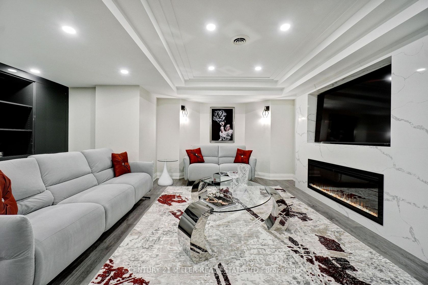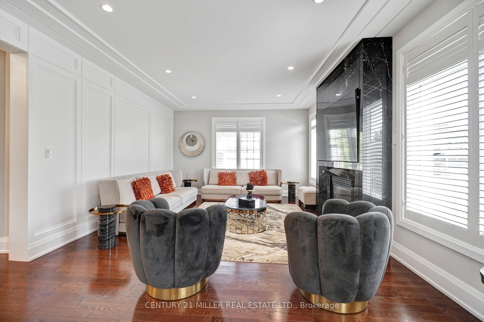 Step into luxury with this beautifully renovated McCorquodale model, located on a quiet street in Oakville's prestigious Bronte Creek community renowned for its forestlands, scenic trails, and tranquil ravines. Set on a meticulously landscaped lot, the home features a custom concrete driveway and walkway, manicured gardens, and a private backyard oasis complete with a composite deck, tinted glass railings, stone patio, and hardtop gazebo. Exterior upgrades include a new front door, updated garage doors with openers, and built-in security cameras.Inside, the fully updated open-concept layout showcases elegant Italian porcelain tile, MDF paneling, pot lights, and stylish fixtures throughout. The formal dining room offers coffered ceilings and a mirrored accent wall, while the living and family rooms are enhanced with wainscoting and a striking marble fireplace feature. The chef-inspired kitchen boasts stainless steel built-in appliances (oven, microwave, cooktop, dishwasher), quartz countertops and backsplash, a large island with breakfast bar, and direct access to the backyard through a garden door.Main floor highlights also include a home office, laundry room with custom cabinetry and garage access, and a modern powder room. Upstairs offers 4 spacious bedrooms & 3 bathrooms. The primary suite impresses with a walk-in closet and spa-like ensuite with double sinks, glass-enclosed shower, and soaker tub. Two bedrooms share a semi-ensuite 4-piece bath, while the remaining bedroom is served by another 4-piece bath. A bonus second-floor office adds functional flexibility.The finished basement extends the living space with a sleek kitchenette with quartz waterfall island, a cozy family room with quartz feature wall and fireplace, gym with hydro spa, fifth bedroom, and a 3-piece bath with rainfall shower and chromotherapy wall. Extras include a 6-camera HD security system, EV charger (2025), and roof (2018). Close to top-rated schools, trails, parks, transit, and highways.