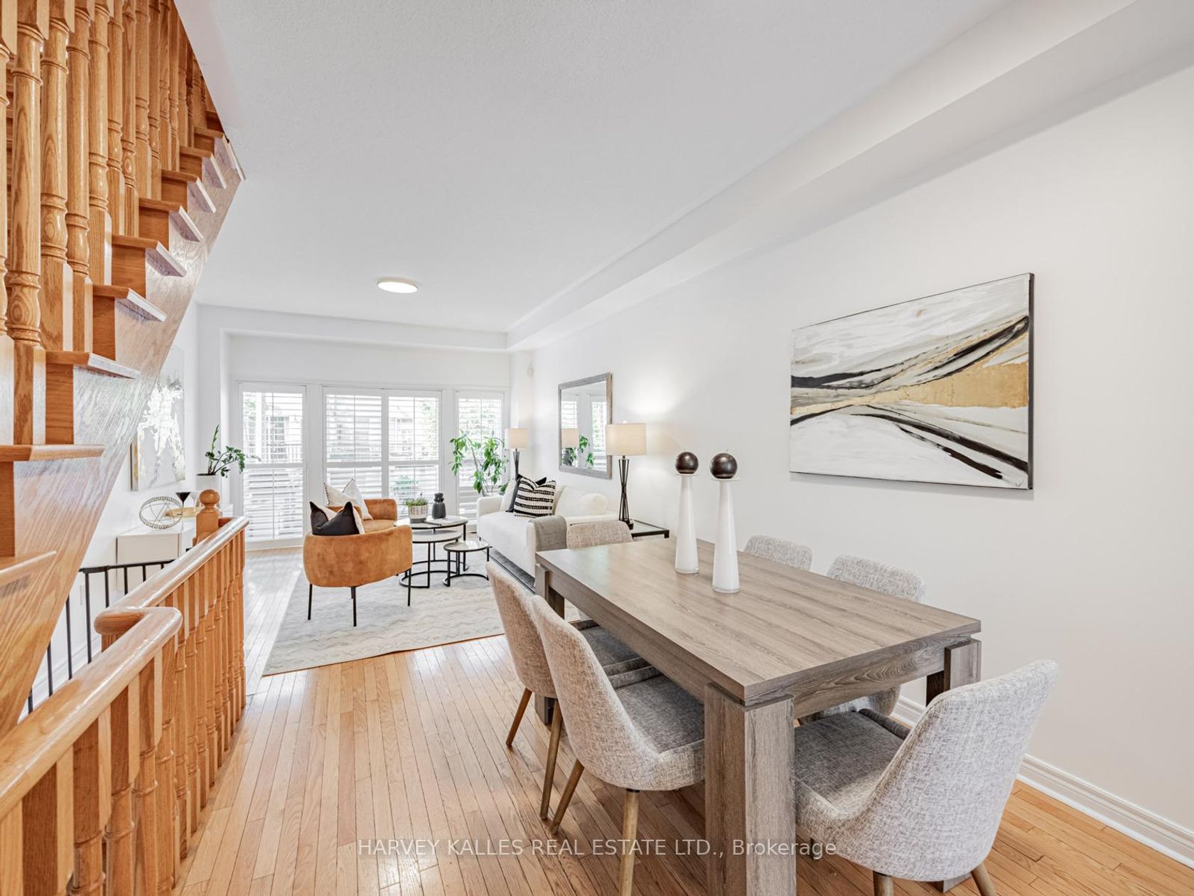 Welcome to 52 Market Garden Mews, where luxurious living meets everyday convenience. This stunning four-bedroom, two-washroom freehold townhouse has no monthly maintenance fees and offers nearly 2,000 square feet of beautifully designed living space, one of the largest floor plans in this highly sought-after complex. Step into the open-concept main floor, where hardwood and tile flooring create a warm and inviting atmosphere. The modern kitchen is a true culinary haven, complete with sleek stainless steel appliances and elegant granite countertops. The bright living room features a wall-mounted electric fireplace console and California shutters, opening directly onto a private terrace perfect for barbecuing, entertaining, or simply relaxing.On the second floor, you'll find two spacious, light-filled bedrooms that share a four-piece washroom. The third floor is home to two more bedrooms, including the large primary suite with generous windows, a walk-in closet, and a semi-ensuite washroom. The finished basement provides an excellent guest room or recreation space and connects directly to the oversized garage with plenty of storage.Located in a vibrant and family-friendly neighbourhood, this home is within easy walking distance to the shops and restaurants along The Queensway. With quick access to public transit, major highways, downtown Toronto, Sherway Gardens, the waterfront, and both Pearson & Billy Bishop Airports, convenience is at your doorstep.This exceptional property combines style, comfort, & functionality, making it a must-see for those seeking the perfect Etobicoke lifestyle.