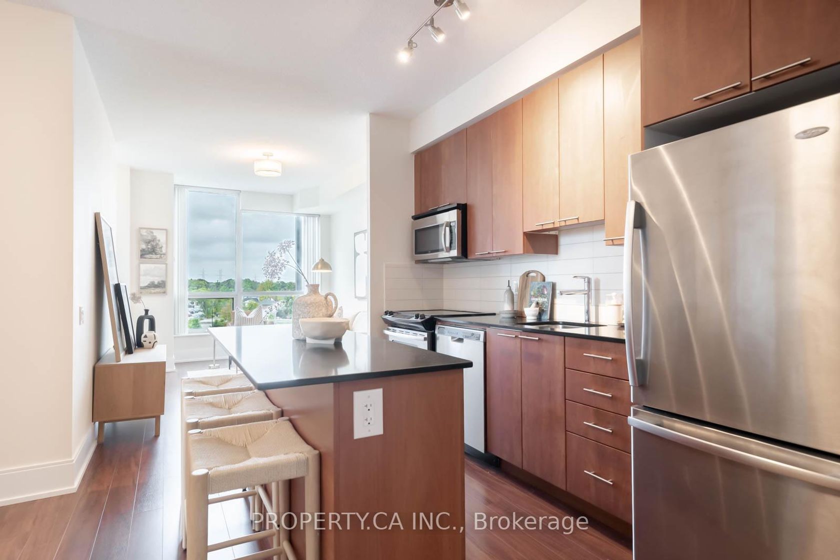 Absolutely stunning 2 bedroom, 2 full bath corner suite at the sought-after Parc Nuvo. Suite 704 combines modern comfort with low-maintenance living, offering a bright, airy space with sweeping unobstructed park views that provide year-round privacy and tranquility. The functional layout showcases soaring 9 ft ceilings and a sleek, spacious kitchen featuring stainless steel appliances, granite counters, and a large island - perfect for the home chef or for casual entertaining. The open dining area flows into the generous living room, enhanced with dimmable lighting to set the mood for any occasion. The sunlit primary bedroom boasts two full walls of windows, a private ensuite with upgraded glass shower door, and a soaker tub for ultimate relaxation. The versatile second bedroom with west-facing views can serve a multitude of purposes, whether as a bedroom, guest room, nursery, home office, or creative space. Thoughtful finishes elevate the home, including shaker-style doors, 7" baseboards, marble vanity, polished chrome details, and a carpet-free design throughout. Enjoy an open, light-filled living room overlooking the park, creating a serene and spacious feel. Unbeatable Location - Kipling Station right at your doorstep, connecting you seamlessly to Downtown, Pearson Airport, Mississauga, and the GO. Just minutes to Hwy 427, 401 & QEW/Gardiner, plus Sherway Gardens, local parks, cafés, Farm Boy, Six Points, and the future Etobicoke Civic Centre with new parks, library, child care, and more. Situated in a well-managed Tridel building, residents enjoy top-tier amenities including an indoor pool, gym, BBQ terrace, party and business rooms, visitor parking, and 24-hour concierge. Includes one conveniently located parking spot and an oversized locker. An incredible value in one of Etobicoke's most desirable condo communities!