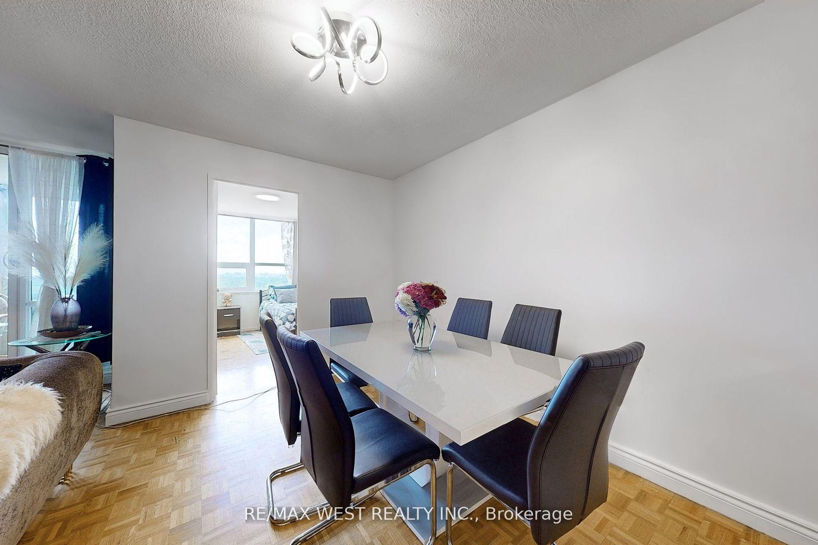 Spaciousness 2-bedroom plus a den 2-bathroom condo. Features an eat-in kitchen with designated breakfast space, a separate dining area overlooking the family room. Primary large bedroom featuring a walk-in closet and a 2-piece ensuite bathroom. The second large bedroom provides ample living space. The den offers flexibility, serving as a potential 3rd bedroom, office, or separate living area. Conveniently located near all amenities and major highways, it's just a 20-minute drive to downtown Toronto and a quick 10-minute commute to YYZ airport. Includes all utilities, internet, cable tv. Enclosed Balcony with recently installed sliding glass doors & sliding mesh doors enjoyment year-round. Pictures were taken prior to having tenants