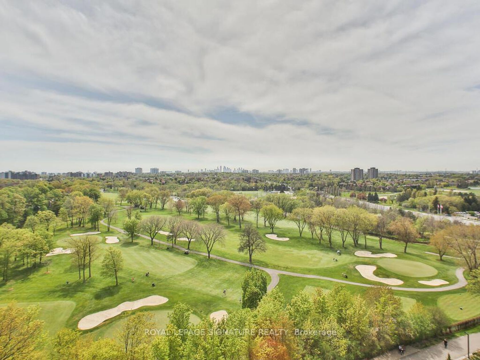 Welcome to the prestigious lifestyle of The Masters Condominiums in the heart of Markland Wood one of Etobicoke most sought-after communities. This spacious 2-storey split-level suite offers sweeping, unobstructed views of the renowned Markland Wood Golf Club, the tranquil Etobicoke Creek, and breathtaking sunsets. With over 1,500 sq. ft. of living space, this suite features a generous living room, formal dining area, three large bedrooms, 2.5 bathrooms, and two private balconies perfect for enjoying summer BBQs while taking in the scenic vistas. The kitchen includes a pantry, and there's an ensuite locker for added storage. Hardwood parquet flooring runs throughout the main level, with wall-to-wall broadloom in the bedrooms (parquet under broadloom). Includes exclusive use of two underground tandem parking spaces fits up to three cars. GREAT POTENTIAL! This is a diamond in the rough, offering tremendous value and awaiting your personal renovation touch. With sweat equity, this suite can be transformed into your dream home. The Masters is known for its resort-style living, nestled on 11 beautifully landscaped acres. Amenities include indoor and outdoor pools, walking trails, three outdoor tennis courts (multi-use), two squash courts, an exercise room, sauna with change rooms, clubhouse lounge, party room, hobby and craft rooms, game tables (ping pong & billiards), and a sundeck overlooking the golf course. Conveniently located near TTC, shopping, excellent schools, and just minutes to Pearson Airport and major highways (427, 401, QEW & Gardiner). Please note: property has been virtually staged and is being sold in as is, where is condition including chattels and appliances. Executors make no warranties or representations.
