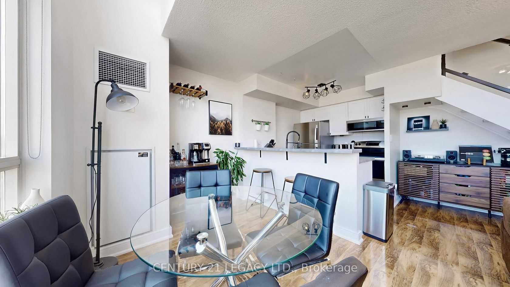 Modern Renovated 1BR/1WR Two-Storey Loft in Skylofts II at Mystic Pointe Manhattan Style Living!Step into this fully renovated, modern one-bedroom, one-washroom loft in the sought-after Skylofts II at Mystic Pointe offering a true New York/Manhattan-style living experience. This bright and airy two-storey unit features a dramatic 17-foot wall of windows that floods the space with natural light and offers stunning north exposure views.Enjoy cozy evenings by the gas fireplace, watching the moon and stars from your open-concept living room. The newly renovated kitchen is a chefs delight, boasting a new backsplash, deep sink, stainless steel appliances, and smart light switches controllable via app combining style and tech-savvy convenience.The spacious loft-style primary bedroom overlooks the living area and features ample closet space and a wardrobe system. Floating stairs add architectural flair, while the breakfast bar makes casual dining a breeze.All this just steps from the lake, boardwalk, restaurants, shops, trails, and dog parks ideal for outdoor lovers and urban explorers alike.