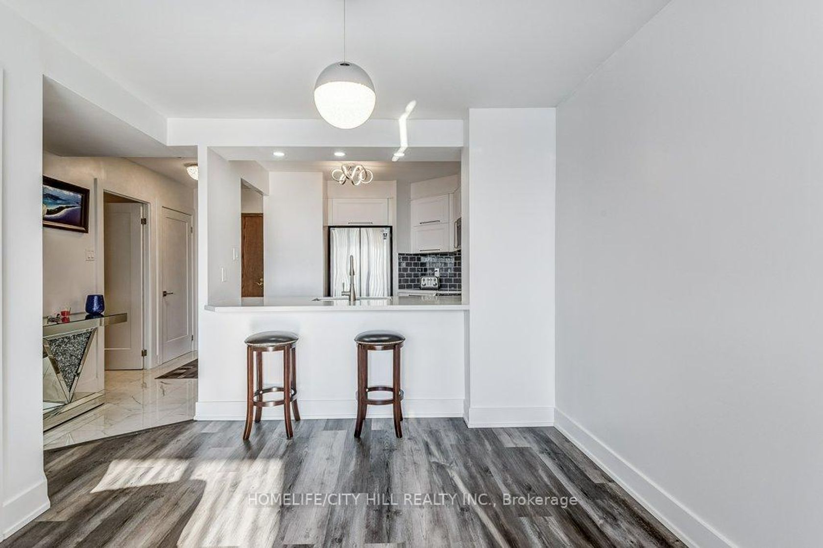 Fantastic Lake Shore community having a beautiful kitchen with Polished white finished cabinets, Stainless steel Kitchen handles, Large 1 piece undermount kitchen sink, matching white marble countertop, finished ceramic kitchen backsplash, Kitchen breakfast bar with stools, Hardwood floors thru out, wonderful layout. Great community waking distance to lake front trails for amazing recreational activities or leisure walks and rides.