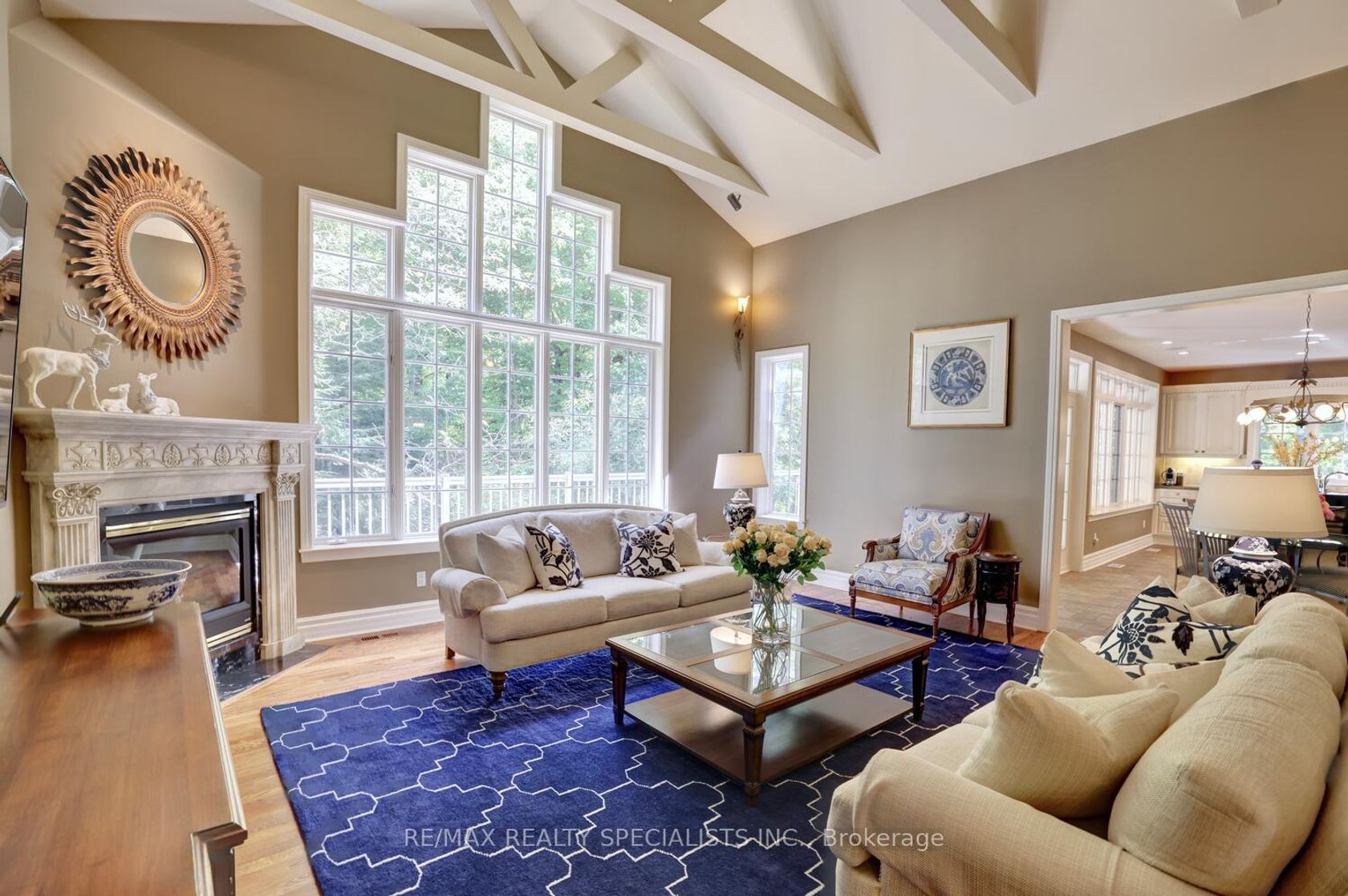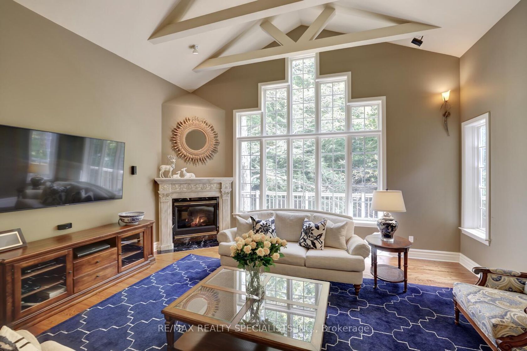 Architectural Masterpiece in Oakville - Muskoka Living on the Ravine! Welcome to the exclusive enclave of Riverbank Way, where bespoke homes overlook lush wooded ravines & back onto Sixteen Mile Creek Conservation. At the very end of this quiet cul-de-sac, the trail ends & tranquil home life begins. This custom-built 6,160 sq. ft. residence blends elegance, functionality & luxury. Sun-filled interiors are framed by picturesque forest views through expansive custom windows w/transoms. Grand living room w/soaring 16' high open-beam ceilings & gas FP forms the heart of this home. Entertain in the dining room designed for 12 guests. Enjoy Downsview kitchen featuring granite counters, marble backsplash, centre island w/2nd sink w/filtered water, gas stove, LED pot lights, B/I speakers & walk-in pantry. The breakfast room opens to a composite deck with glass railings, perfect for morning coffee, or glass of wine. The main floor primary suite boasts 10' high vaulted ceilings, FP, W/O to the deck, W/I closet & spa-inspired bath w/5-jet Jacuzzi, separate shower & stained-glass window. Convenient main floor laundry, inside garage entry & private staircase 2 LL complete this floor. Upstairs are 2 spacious bedrooms & a skylit bath. The walk-out lower level offers a separate entrance, billiards room, media room, office, 4th bedroom, large family room ideal for entertaining or multi-generational living. Granite rocks, multitier patios, lawn, stone benches in the amazing backyard. Dutch clean home. Updates: roof shingles (2018), 2nd floor hardwood (2018), finished lower-level rms (2018), furnace & AC (2023), epoxy garage flrs (2023).Lifestyle perks: miles of interconnected trails@ the doorstep, nearby Lions Valley with red cliffs, Hospital, Health Science Village, new Regional Courthouse, 16 Mile Sports Complex, library, community centre, shopping, dining access Hwy 407, QEW&GO Train. The epitome of sophistication & elegance, set in Oakville's most breathtaking natural landscape.