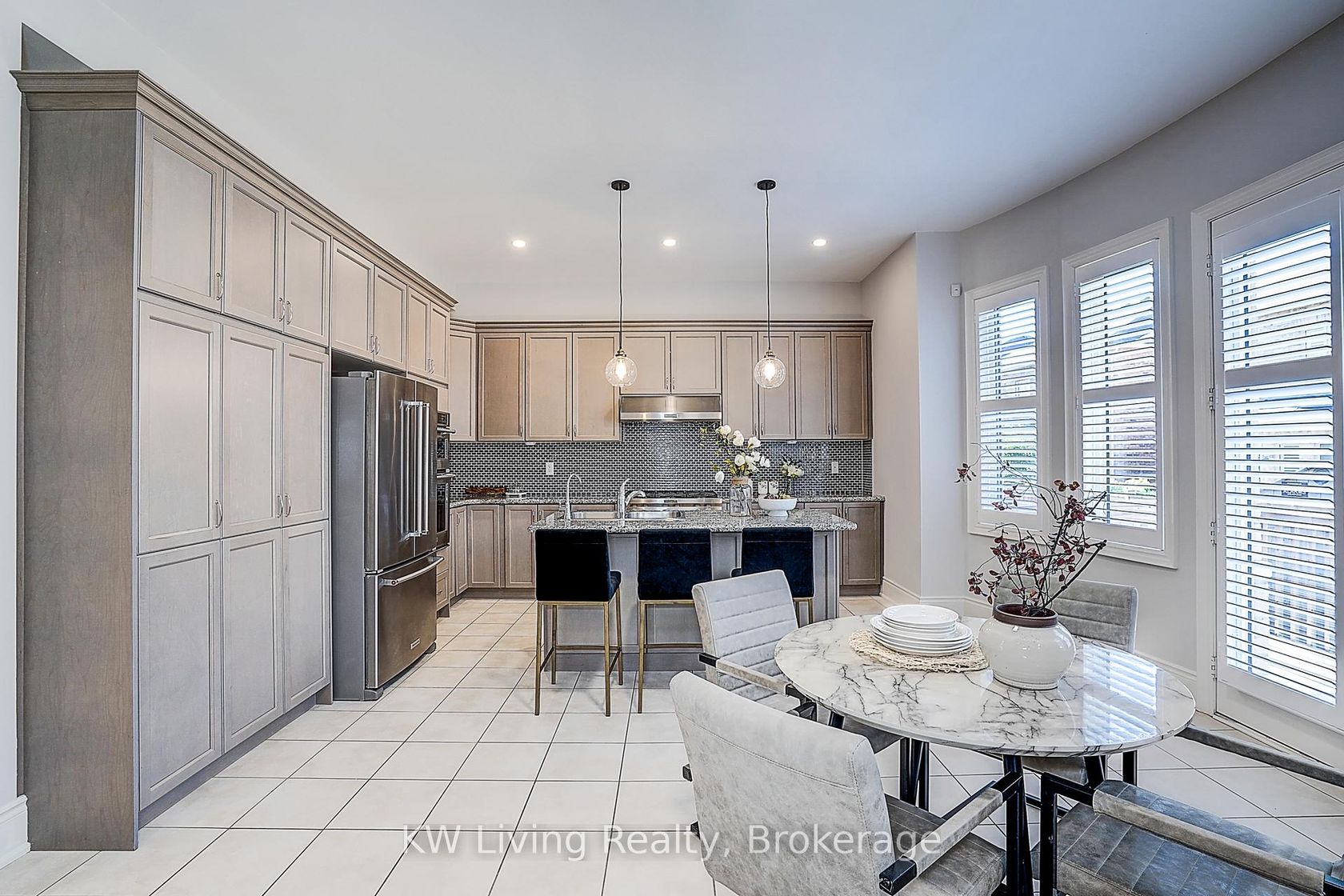 Welcome to this beautifully appointed executive residence, tucked away on a quiet, family-friendly street. Boasting 3,330 sq ft of above-ground living| space, this home offers a HIGHLY DESIRABLE LAYOUT designed for both comfort and sophistication. Step inside to soaring 10-foot ceilings on the main level and 9-foot ceilings upstairs, creating a bright and expansive ambiance throughout. The open-concept living and dining areas are perfect for entertaining, seamlessly connecting to a gourmet eat-in kitchen with a walk-out to the deck, which is ideal for indoor-outdoor gatherings. The spacious family room features a cozy gas fireplace, pot lights, and large windows that bathe the space in natural light. A dedicated office provides an excellent work-from-home setup, while beautifully stained hardwood floors and elegant staircases add timeless charm and easy maintenance. Upstairs, the luxurious primary suite offers a spa-inspired 5-piece ensuite and dual walk-in closets. The second bedroom includes its own private 3-piece ensuite, while the third and fourth bedrooms share a generous 4-piece semi-ensuite. All bedrooms are fitted with brand-new Berber carpet, combining stylish appeal with low-maintenance comfort. A convenient second-floor laundry room completes the thoughtful design. Ideally situated just steps from top-rated schools, scenic trails, and lush parks, and only minutes from shopping, dining, the hospital, and essential amenities. With quick access to Highways 403, QEW, and 407, commuting is effortless