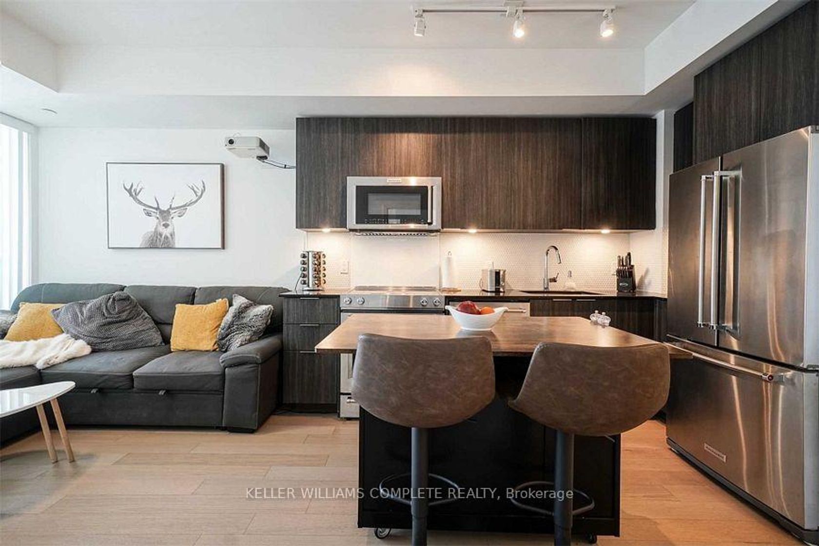 Welcome to Eau Du Soleil - Toronto's Premier Waterfront Community! Experience luxury living in this stunning 1-bedroom + den suite, perfectly positioned to offer breathtaking views of Lake Ontario and Toronto's skyline. Located steps from Humber Bay Park, this suite blends modern design with resort-style amenities, offering tranquility without compromising urban convenience. Inside, you'll find a bright, open-concept layout with floor-to-ceiling windows that flood the space with natural light. The contemporary kitchen features sleek stainless steel appliances, and the spacious bedroom boasts a walk-in closet. The versatile den is ideal for a home office, and in-suite laundry adds to your convenience. Enjoy fresh air and stunning views from your large private balcony. This unit also includes a dedicated parking spot, secure storage locker, private wine cellar, and a cigar humidor. As a resident, indulge in exclusive access to the Water Lounge and Party Room on Level 46, reserved daily for residents living on floors above the 30th - a luxurious retreat offering premium experiences at no extra cost. Eau Du Soleil offers an unparalleled array of amenities, including: Saltwater swimming pool with hot tub, CrossFit training zone, MMA studio, yoga & Pilates classes, spin room, and exercise room, Party rooms, theatre, poker room, office & boardroom, Guest suites, kids' playroom, pet spa, everyday lounge, patios, bike room, car wash, mail room, and visitor's parking with EV charging stations. Convenience is at your doorstep with Metro, LCBO, Shoppers Drug Mart, dry cleaning, Panero Pizza, and Sunset Bar & Grill just steps away. Enjoy proximity to top restaurants, schools, scenic walking trails, parks, and downtown Toronto. Don't miss this rare opportunity to embrace the ultimate lakefront lifestyle.