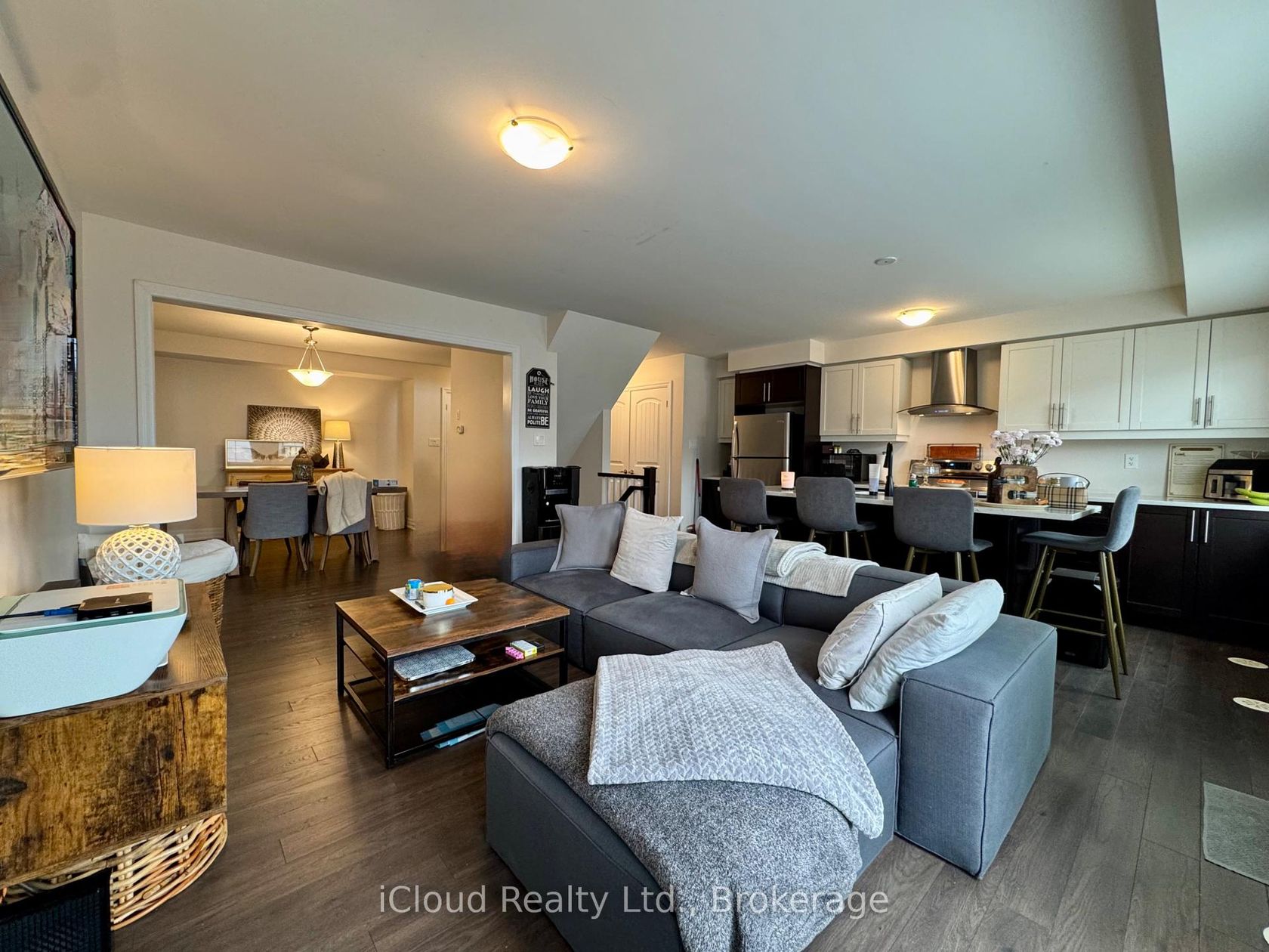 Stunning Mattamy-Built Executive Freehold Townhome in Oakville's Highly Coveted Preserve Community! This Vanessa Model end-unit offers approximately 1,540 sq. ft. of contemporary elegance, thoughtfully designed with premium upgrades throughout. The bright, open-concept layout features a modern white and espresso kitchen with stainless steel appliances, quartz countertops, and stylish cabinetry that perfectly complements the homes sleek design. Enjoy dark espresso hardwood staircases and laminate flooring that flow seamlessly across the main, second, and third level. Upstairs, you'll find three spacious bedrooms and three well-appointed bathrooms, including a luxurious primary suite with a four-piece ensuite, shower/bathtub, and a large walk-in closet. The second level also includes a beautifully upgraded four-piece main bath. The ground level offers a convenient garage entrance, ample storage, and a dedicated office space perfect for remote work or study. Located in one of Oakville's most desirable neighbourhoods, this home combines upscale finishes, functional living, and a welcoming community atmosphere just minutes from parks, top-rated schools, shopping, and major highways.