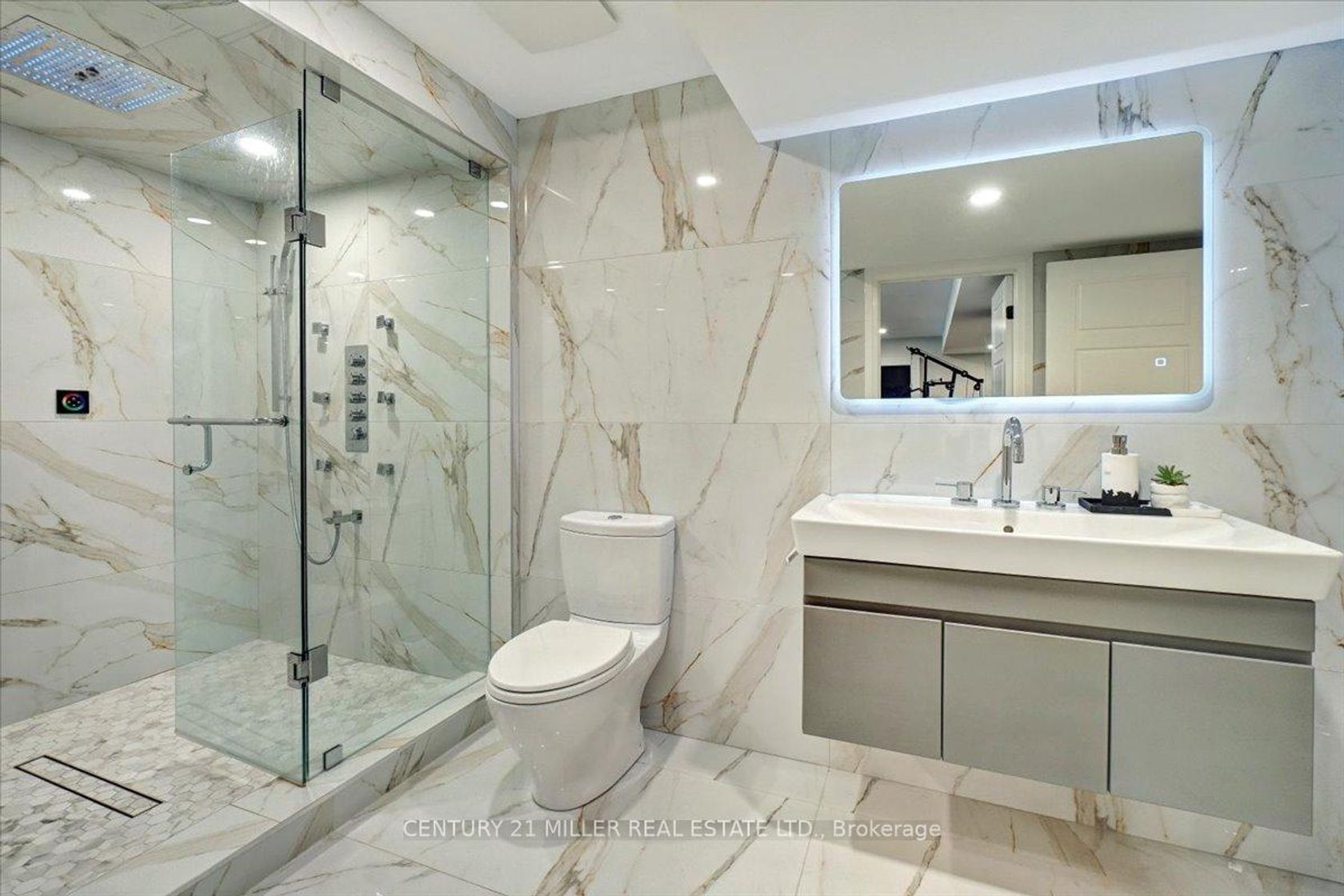 Step into luxury with this beautifully renovated McCorquodale model, located on a quiet street in Oakville's prestigious Bronte Creek community renowned for its forestlands, scenic trails, and tranquil ravines. Set on a meticulously landscaped lot, the home features a custom concrete driveway and walkway, manicured gardens, and a private backyard oasis complete with a composite deck, tinted glass railings, stone patio, and hardtop gazebo. Exterior upgrades include a new front door, updated garage doors with openers, and built-in security cameras. Inside, the fully updated open-concept layout showcases elegant Italian porcelain tile, MDF paneling, pot lights, and stylish fixtures throughout. The formal dining room offers coffered ceilings and a mirrored accent wall, while the living and family rooms are enhanced with wainscoting and a striking marble fireplace feature. The chef-inspired kitchen boasts stainless steel built-in appliances (oven, microwave, cooktop, dishwasher), quartz countertops and backsplash, a large island with breakfast bar, and direct access to the backyard through a garden door.Main floor highlights also include a home office, laundry room with custom cabinetry and garage access, and a modern powder room. Upstairs offers 4 spacious bedrooms & 3 bathrooms. The primary suite impresses with a walk-in closet and spa-like ensuite with double sinks, glass-enclosed shower, and soaker tub. Two bedrooms share a semi-ensuite 4-piece bath, while the remaining bedroom is served by another 4-piece bath. A bonus second-floor office adds functional flexibility.The finished basement extends the living space with a sleek kitchenette with quartz waterfall island, a cozy family room with quartz feature wall and fireplace, gym with hydro spa, fifth bedroom, and a 3-piece bath with rainfall shower and chromotherapy wall. Extras include a 6-camera HD security system, EV charger (2025), and roof (2018). Close to top-rated schools, trails, parks, transit, and highways.