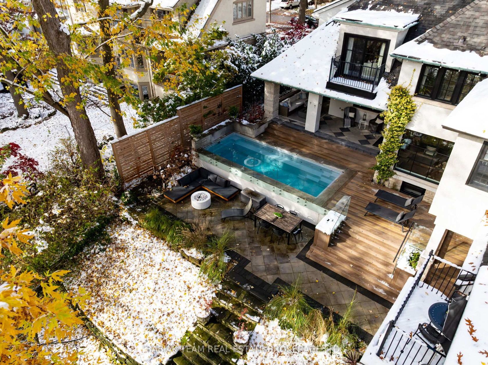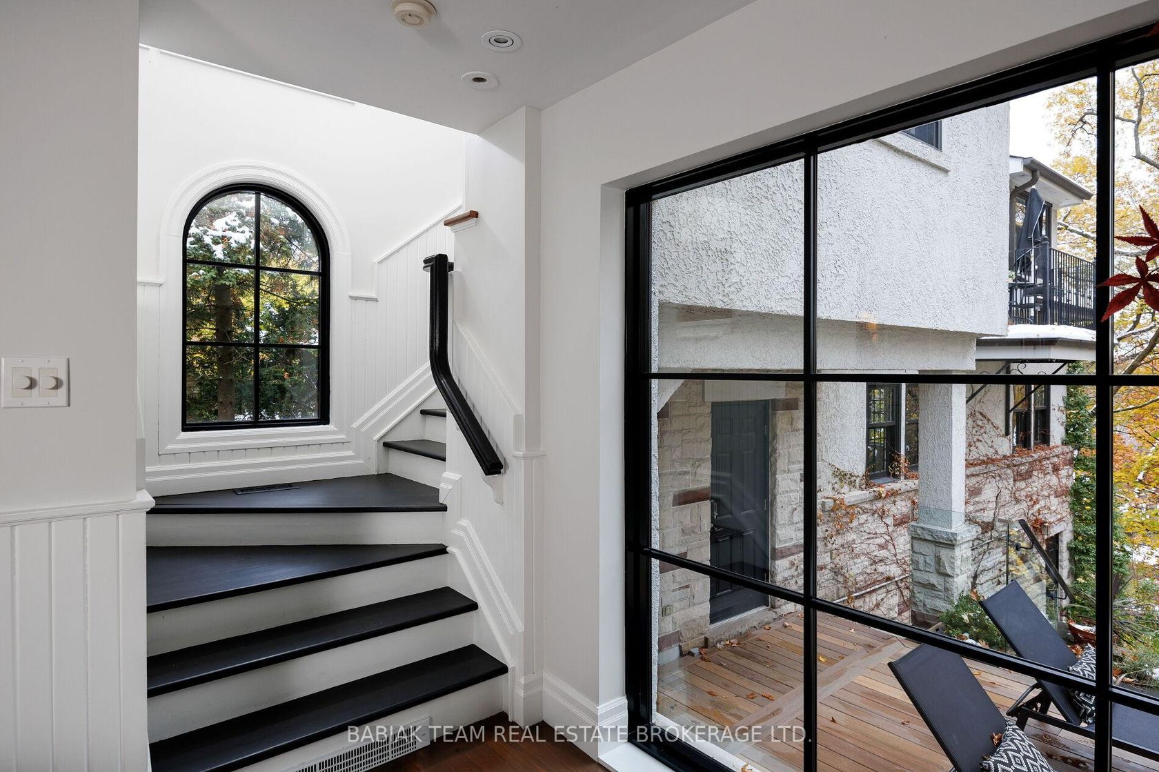 Majestic 6 +1 bedroom residence, set on a spectacular 75' x 190' Muskoka-like ravine lot in the heart of prestigious Baby Point! This property of distinction offers the discerning buyer an impressive combination of features including grand principal rooms, a luxurious saltwater pool, an oversized heated garage with indoor parking for 3 cars, and an expansive show-stopping great room with meticulous architectural details. Featured in Style At Home, this extraordinary property has been carefully renovated and designed with great care and attention to detail. Centre hall foyer open to elegant living and dining rooms with sublime windows on multiple sides and treed views. Chef's kitchen with adjoining breakfast room and floor-to-ceiling sliding glass doors to resort-like outdoor living with covered stone patio with barbecue area, marvelous fiberglass pool with automatic cover and adjacent composite deck, lower patio with gas fire table, and private ravine views on all levels. Main floor office and powder room. Built above the garage but connected through the main house, the sensational great room designed by Brian McCourt Designs boasts a vaulted ceiling, gas fireplace with soapstone mantel, impeccable custom millwork throughout with built-in office and wet bar, balcony overlooking ravine, delightful 3-piece bath, and separate gym. The second level includes a wonderful primary bedroom retreat with captivating ravine vistas, balcony, custom dressing room, and a hotel-inspired 5-piece spa bathroom. Three additional lofty bedrooms are located on this level, together with a 4-piece family bath. The third level includes two more bedrooms, two walk-in closets, and another full bathroom. Rounding out this exceptional offering the lower level includes a large recreation room, laundry and mudroom with custom cubbies, separate entry, seventh bedroom, lovely 3-piece bath, and storage room. Extensively landscaped with irrigation, fabulous plantings, and an abundance of parking.