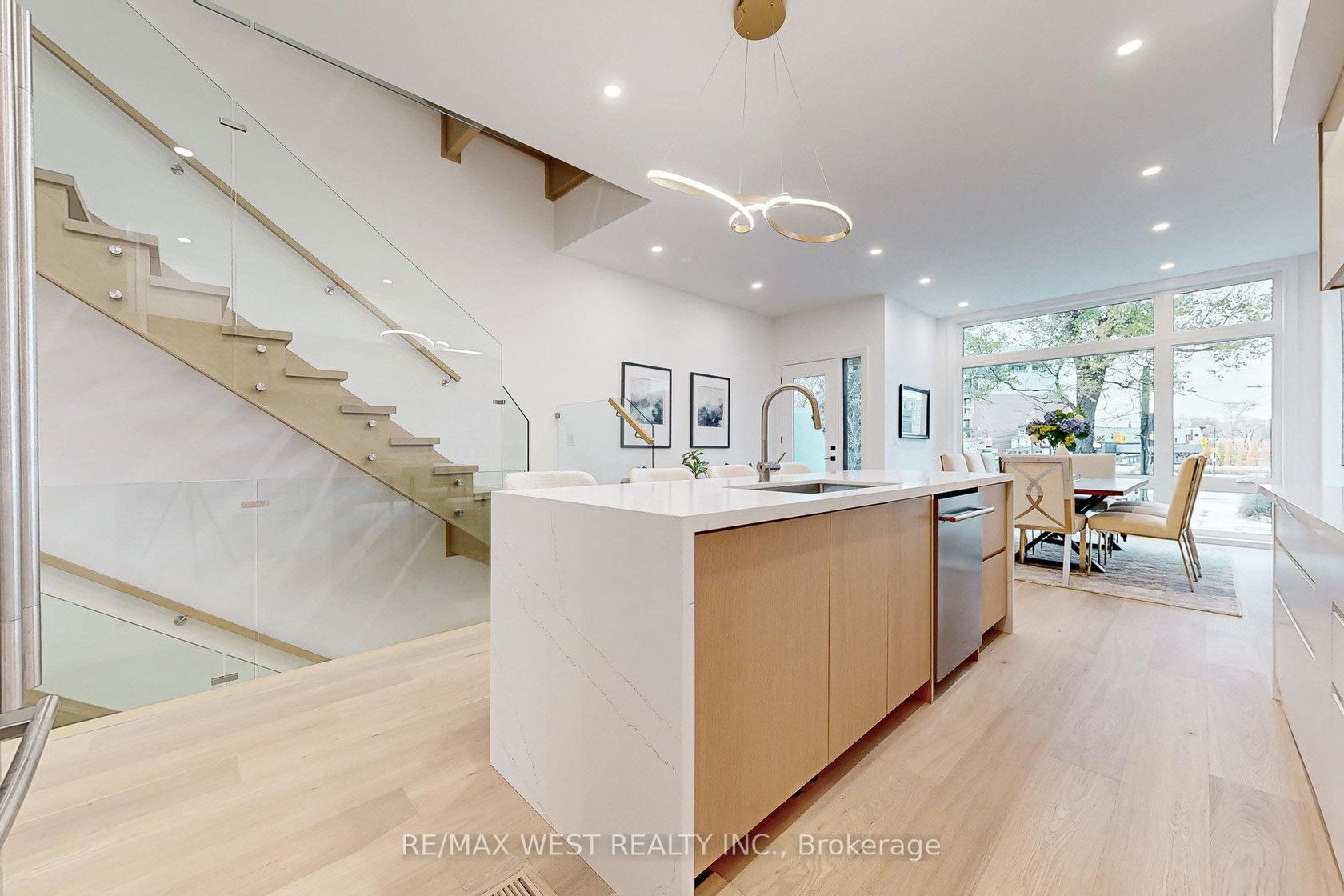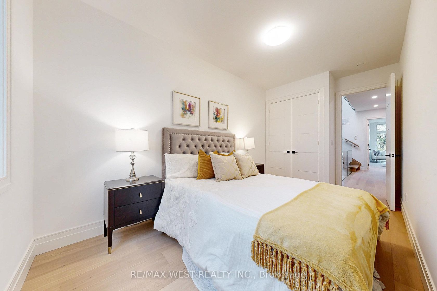 Welcome to 2639 R Dundas St Unit 4, Newly custom built 2600 Sq Ft sophisticated luxury End unit townhouse tucked just behind Dundas on a private lot with only 4 units. Features rooftop deck of 356 Sq Ft with skyline/CN tower views, a private backyard and a glass balcony off the kitchen to enjoy the outdoors. Refined craftsmanship and superior high-end finishes throughout sure to impress, featuring an open floor plan, sleek custom made 15 ft kitchen 9x3 ft quartz island with waterfall feature , Riobel touchless faucet, floor to ceiling windows. Airy bright family room with large window, media wall, fireplace and open shelves. Master bedroom retreat with floor to ceiling windows, custom accent wall, 12x5 walk-in closet with custom built in cabinets, Spa like bath features deep whirlpool tub, glass shower with waterfall, smart touchless toilet/bidet, and heated floors. Bedrooms 2&3 both have custom double built in closets and share a 4-pc bath. Glass railings on all levels, open staircase, 12 feet ceilings on main, 10 feet on second, and 9 feet on third. Skylight over staircase brings natural light to all levels. Welcoming foyer with 6x4 ceramic tiles heated floors, floor to ceiling closet/cabinets and direct access to a 220 sq foot garage. Impressive ground level recreation room with custom accent wall, 12 foot ceilings, 3pc bath, with direct access to private backyard. This room would also suit a home office, gym or nanny suite. These are just some of the exceptional features of this home, full list on feature sheet. Prime Junction Located within a short walk to Bloor subway and GO Train line to Downtown or Airport, and just minutes to Roncesvalles Village, High Park, and Bloor West Village shops, restaurants and great school district. Truly unique opportunity and great value that's almost impossible to find for a newly built home of this size in a prime Toronto west location.