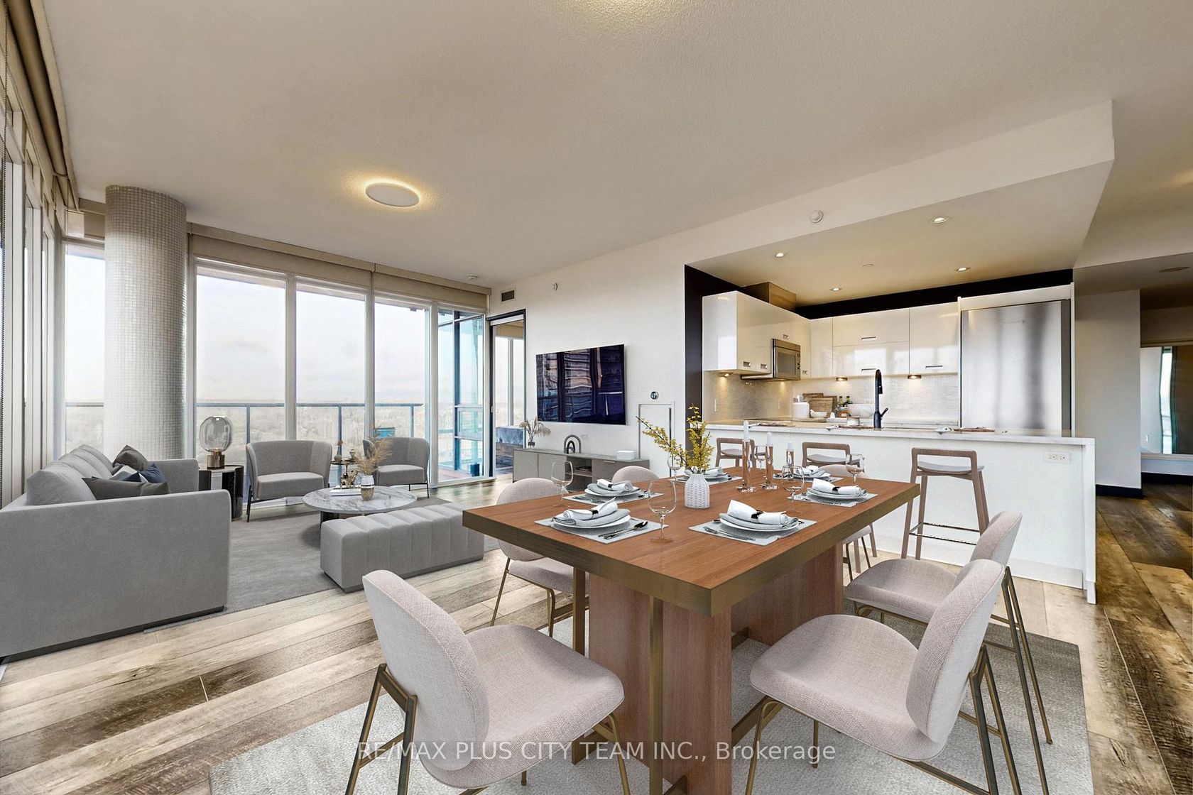 Welcome to The Collins, where Luxury Meets Lifestyle! This stunning 2-bedroom + den, 2-bathroom corner suite boasts 971 sq. ft. of well-designed living space, including a rare 237 sq. ft. wraparound terrace ideal for outdoor dining, entertaining, or simply unwinding in the fresh air. Inside, the open-concept layout is bathed in natural light, with a spacious living and dining area (24' x 13'4") that flows seamlessly into a modern kitchen featuring a full-size island with breakfast bar seating, sleek cabinetry, and premium finishes. The split-bedroom floor plan ensures added privacy and comfort for both residents and guests. The primary bedroom offers a serene retreat with a walk-in closet and a spa-like 4-piece ensuite. The second bedroom is bright and generously sized, complete with large windows and a full closet. A versatile den provides the perfect space for a home office, reading nook, or creative studio. Elegant, functional, and filled with natural this exceptional suite at The Collins is the perfect place to call home. **Please note that the photos are virtually staged