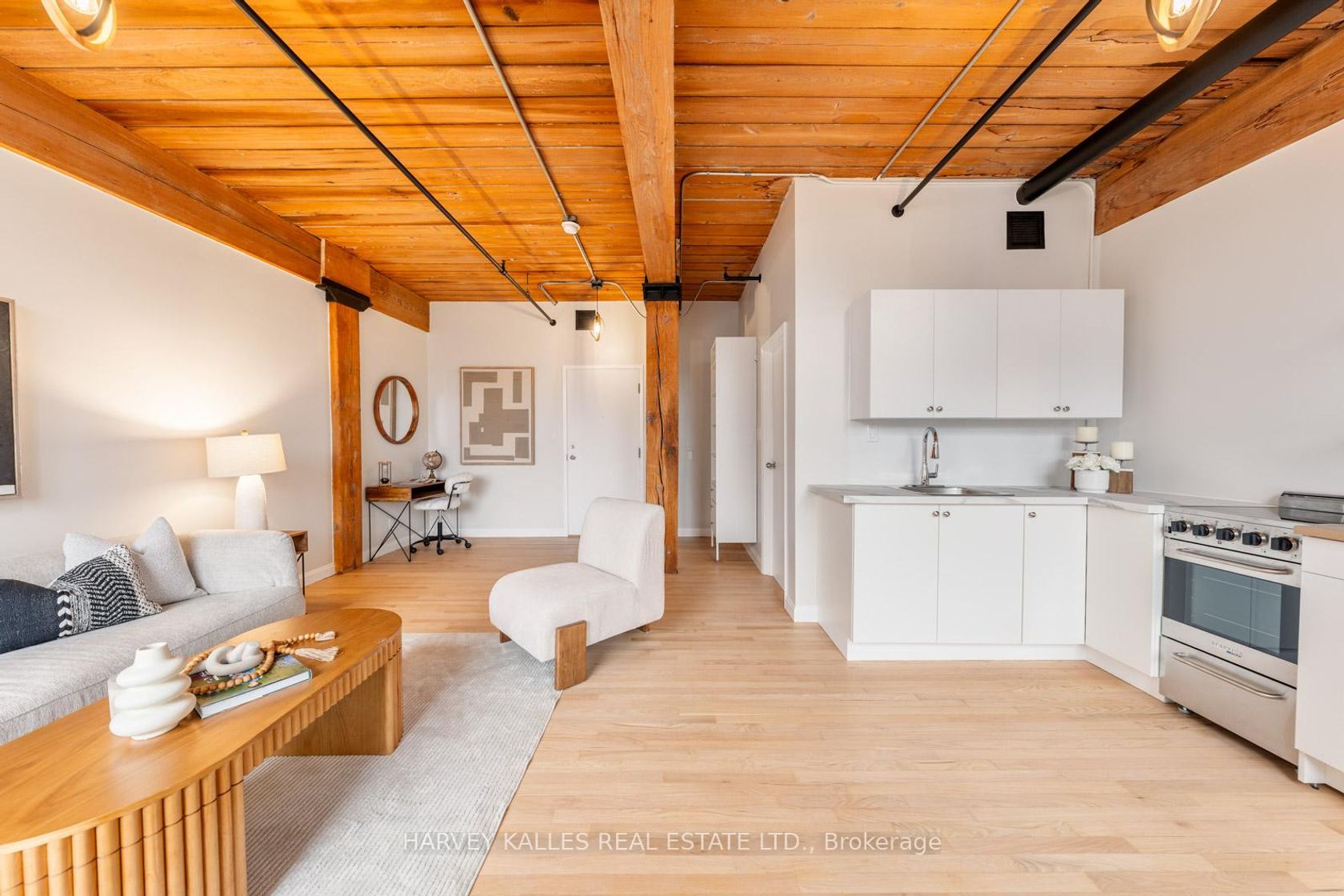 Step into this beautiful updated hard loft in one of Toronto's most coveted boutique buildings at 24 Nobel Street. This bright and airy studio features authentic loft character with soaring ceilings, exposed brick, original beams, and over-sized factory windows that bring in exceptional natural light. Enjoy a desirable south-facing exposure, offering warmth, brightness, and an inviting atmosphere through-out the day. The open layout provides flexible living, dining, and sleeping arrangements, creating a seamless blend of style and functionality for modern urban living. With its refreshed interior and clean comtemporary feel, this loft is truly move-in ready. Located on a quiet residential street just steps away from Queen West's cafes, restaurants, transit, shops, and galleries, this is a rare opportunity to own in a true hard-loft conversion with low maintenance fees and unbeatable walkability. Perfect for first-time buyers, investors, or those seeking a minimalist city lifestyle in one of Toronto's most iconic buildings.