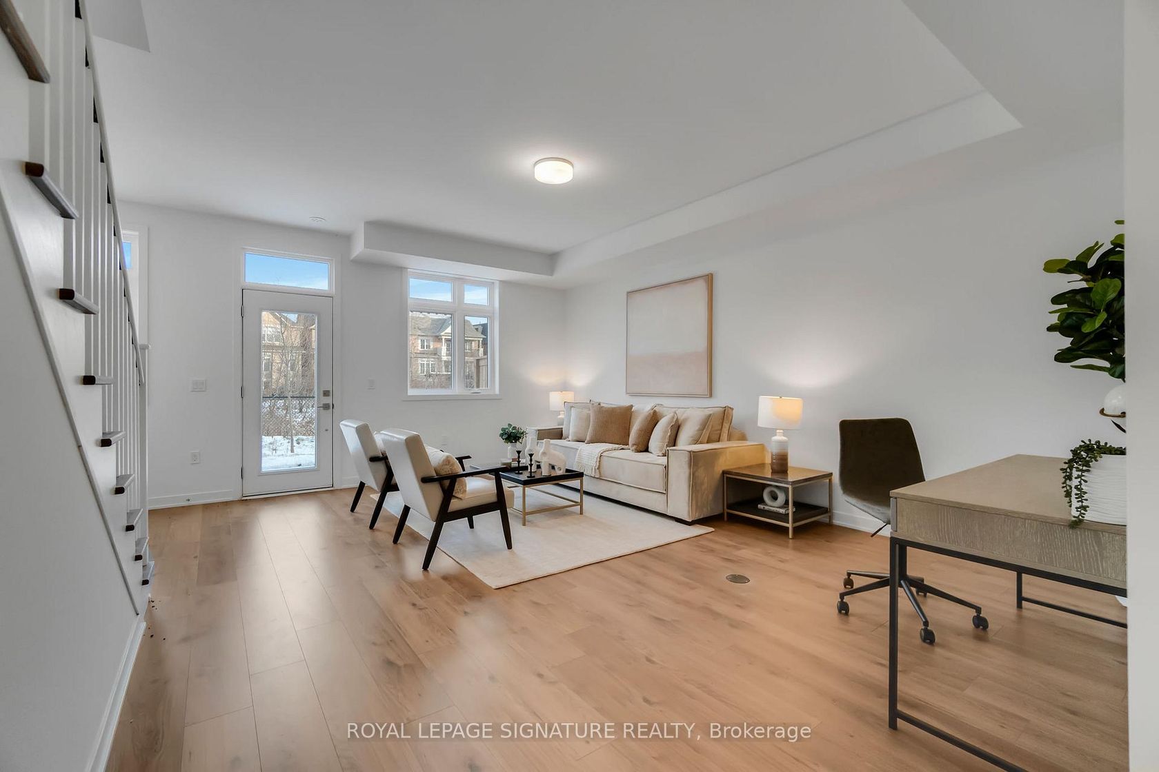 Brand New Freehold Townhouse End Unit Backing To A Ravine. Featuring 3 Bedrooms And 3Bathrooms.Laminate Flooring Throughout. Enter Into A Spacious Great Room On The Ground Floor. The Kitchen Is A Chef's Dream, Featuring A Breakfast Area, Modern Appliances, And Quartz Countertops And Backsplash , Along With A Separate Dining Space For Entertaining. Enjoy The Seamless Flow From The Living Room To A Walk-Out Terrace, Ideal For Relaxing. The Master Bedroom Boasts A Luxurious 4-Piece Ensuite And A Private Balcony, Providing A Serene Retreat. Surrounded by Fine Dining, Top Shopping Destinations, A Beautiful Shoreline, And Exceptional Public And Private Schools In The Gta. Conveniently Located Near Highways 407 And 403, GO Transit, And Regional Bus Stops. **EXTRAS** LED lighting throughout the home, Tankless Domestic Hot Water Heater, Stainless steel hood fan, Island with one side waterfall, One Gas connection for barbeque inthe back yard. One hosebibb in the back yard and in the Garage.