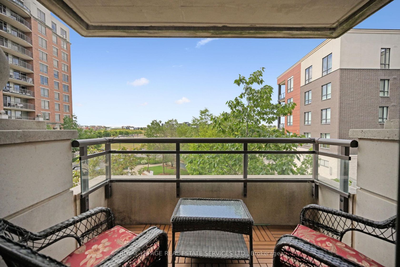 This bright, sun-filled corner unit offers approximately 850 sq. ft. of well-designed living space, along with a spacious balcony featuring unobstructed panoramic views of the park, making it an ideal spot to relax and enjoy the beautiful surroundings. Recently renovated in 2025, this corner unit features a freshly painted interior and is located in the luxurious Central Park condominiums. The functional kitchen is equipped with granite countertops, stainless steel appliances (including a new fridge and stove installed in August 2025), and a breakfast bar. The primary bedroom is complete with a 3-piece ensuite and oversized window. This unit is pet-friendly, has an ensuite laundry, and includes 1 underground parking space and 1 storage locker. Super low condo fees compared to other buildings in the area that include: (Parking, Lockers, Heat, AC, and Water). Building Amenities Incl: Outdoor Pool with updated lounging area, Party room, Media room, Gym, Outdoor kitchen with built-in BBQ and sink, hot tub, Guest suite, Security/Concierge, tons of visitor parking and change rooms with saunas. The Oak Park Community is a charming, pedestrian-friendly neighbourhood with schools, parks, trails, restaurants and shops of every kind within steps from the Courtyard Residences. The 403, 407, QEW & GO Train are only a few minutes away. This was originally a 2-bedroom unit, and has been converted into a 1-bedroom unit with an open-concept den. The seller can convert back to a 2-bedroom.
