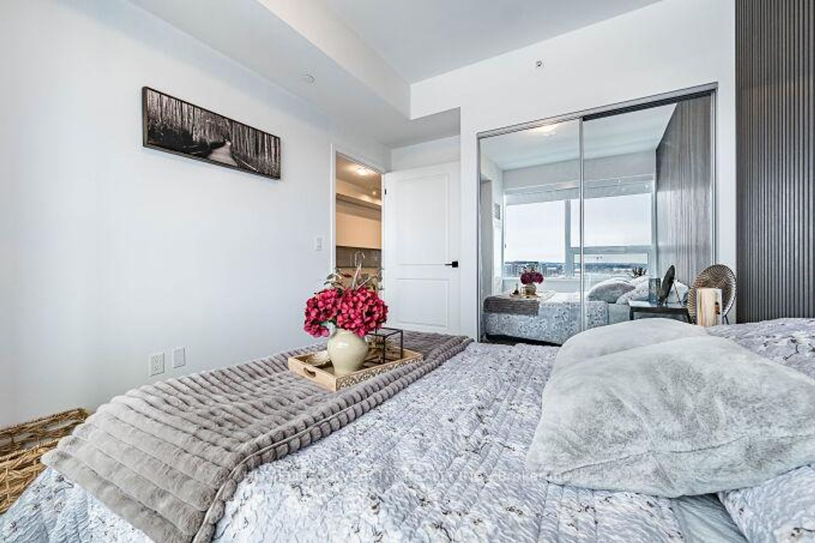 Welcome to this spectacular southwest view unit in the highly sought-after Uptown Core Oakville location! This highly desirable floor plan offers 625 sqft of living space, plus a good size balcony. Open-concept modern kitchen and living/dining space. The kitchen has been beautifully upgraded with granite countertops, a center island, a stylish backsplash, and stainless steel appliances with an integrated dishwasher, and a fridge. Enjoy the convenience of in-suite laundry, along with one parking space and one locker. With large windows and a balcony, this home is open, bright, and offers unobstructed southwest views. Enjoy the luxury of 24-hour concierge service and access to fantastic amenities, including the Chef's Table, a wine-tasting space perfect for entertaining in a high-end atmosphere, a state-of-the-art fitness center, an outdoor pool, a Pilates room overlooking the garden & patio, a ping-pong room, and a theater. This prime location is just steps away from Walmart, Superstore, LCBO, banks, shopping stores, and restaurants. Top-ranked schools are nearby, and it's conveniently located close to Hwy 403/410, Go Transit, 5 minutes from Sheridan College, and just a 20-minute drive to UTM.