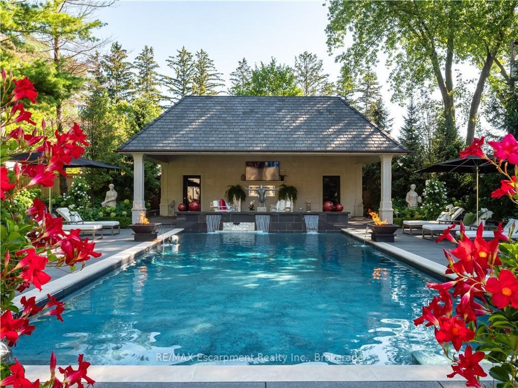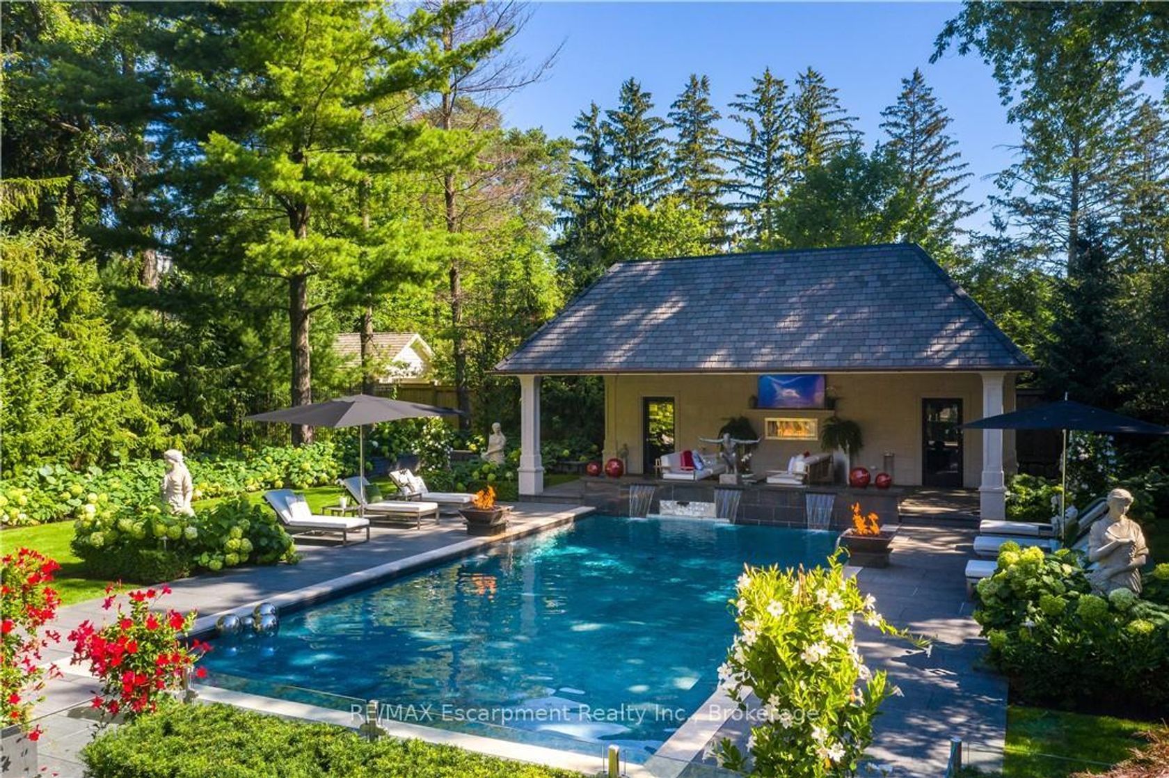 15 Chartwell Rd offers a lifestyle of unparalleled luxury. Drive through the gates & discover the grandeur of this palatial estate. South of Lakeshore,1 door from the lake on a HALF ACRE LOT. Painstakingly curated, the contemporary limestone masterpiece you've been waiting for. Solid iron doors lead to a grand foyer revealing the opulent book matched marble floors. Floor to ceiling wdws & French doors flood the house with light. Cascading waterfalls fank the hall.The Dining Room has statement lighting & servery making hosting a breeze. Soaring 18-ft ceilings & a grand gas f/p are focal points of the Great Room,w/captivating views of the resort style yard. Experience culinary excellence in the black lacquer& glass kitchen by NEFF that features top of the line appliances & a B/I coffee machine & butlers pantry. The intimate Living Room with f/p is the ideal retreat. A main floor office w/built-in cabinetry.2 powder & 2 laundry rooms. The backyard oasis has a gunite pool, waterfalls, fire bowls, covered terrace & outdoor kitchen & f/p.The pool house has a change room,3-pc bath & servery. Towering trees surround the home & are positioned to create privacy. A stone driveway,circular fountain & lush gardens create a breathtaking landscape.Floating marble stairs divide the 3 levels of this home or, you can take the elevator. Skylights make the upstairs airy & bright.The principal suite has nearly 13-ft ceilings, an exquisite 6-piece ensuite & 2 W/I closets. A private balcony overlooks the yard.3 add'l bdrms have 10-ft ceilings,private ensuites & W/I closets. The LL caters to all family members. A 5th bdrm/ensuite makes an ideal guest suite.Gym,R/I Golf Simulator,home theatre,Wine Cellar& doggie Spa. The Games & Rec Rooms have a 2nd kitchen & W/O.Heated garage,baths &LL flrs.Automation. Designed by Bill Hicks & features the artistic creativity of the KT Design Group. Located on Oakville's Street of Dreams, this is an iconic living space designed to impress!Luxury Certified!