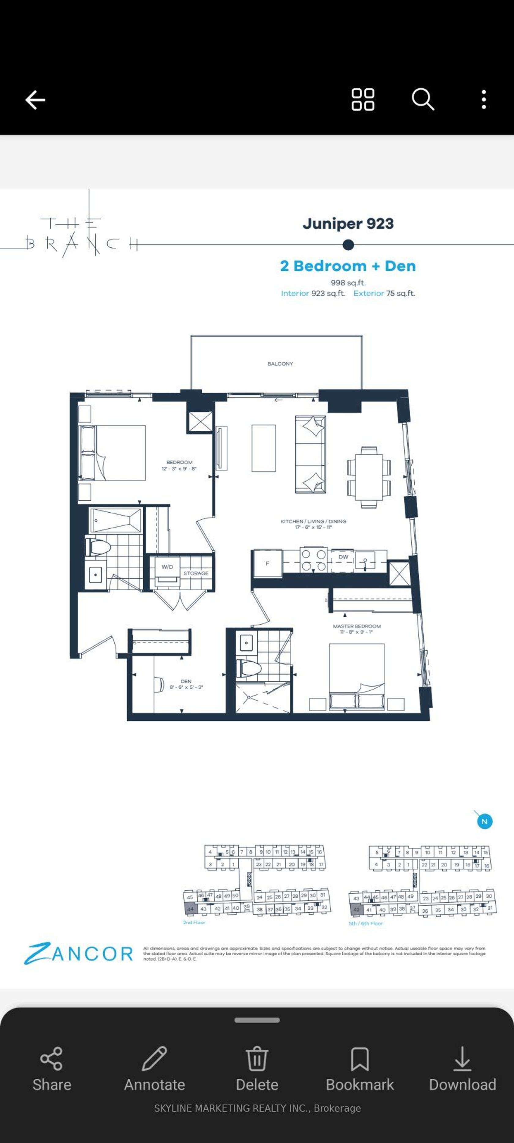 Welcome to The Branch Condos, a new condo community by Zancor Homes at 2450 Old Bronte Rd., Oakville. Move-in Ready. Bright and Spacious 2 Bedroom + Den and 2 Baths Corner Suite. Buy directly from Builder with full warranty included. Amenities include 24 hour concierge, indoor pool, steam room, rain room, party rooms, outdoor bbq's, landscaped courtyard, pet station and many more. Its like living in a resort everyday!! Only 5% deposit, No DC's, No Occupancy Fees, Don't miss this one. If needed, 2nd Parking Spot Available for sale for $35,000 from the builder.