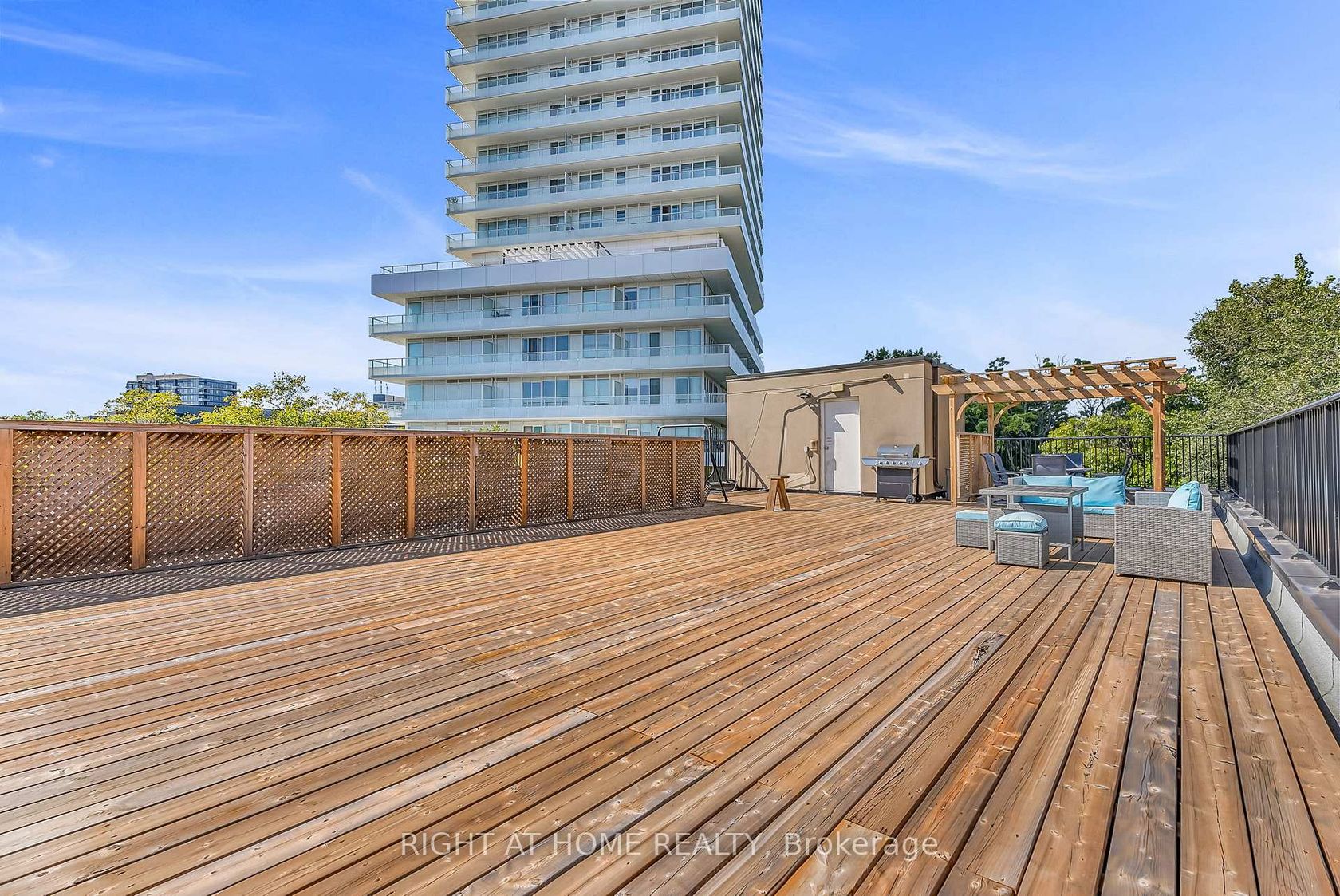 Welcome to Suite 205 at the Humber Lofts - an intimate boutique residence of only 24 units, ideally situated in the heart of Central Etobicoke. Enjoy the convenience of being only steps to Dundas St W, Bloor St W, shopping, cafes, transit, Royal York Subway Station, Lambton Park, and scenic walking and cycling trails along the Humber River. Beautifully renovated with contemporary finishes, this suite offers a bright and functional open-concept layout enhanced by new laminate flooring, high-profile baseboards and fresh, neutral tones throughout. The thoughtfully updated kitchen serves as the centerpiece of the home, featuring modern stainless steel appliances, abundant hardwood cabinetry accented with brushed gold hardware, chic beveled subway tile, upgraded pendant and recessed lighting, and quartz countertops with an extended peninsula for additional seating. The spacious living and dining area boasts soaring 10 ft ceilings and a Juliette balcony that invites an abundance of natural light. The stylish 4-piece bathroom has been fully redesigned with large-format porcelain tile, a modern vanity, and a glass-enclosed shower accented with gold fixtures. The serene primary bedroom offers a mirrored double closet, recessed lighting, and a large window complete with California shutters. Residents also enjoy access to the recently updated rooftop terrace, offering a peaceful outdoor retreat with lounge seating, gazebo, and barbeque area - perfect for relaxing or entertaining. Elegantly upgraded and lovingly maintained by its current owner, Suite 205 presents a rare opportunity to own a refined, move-in-ready home in a highly desirable community.