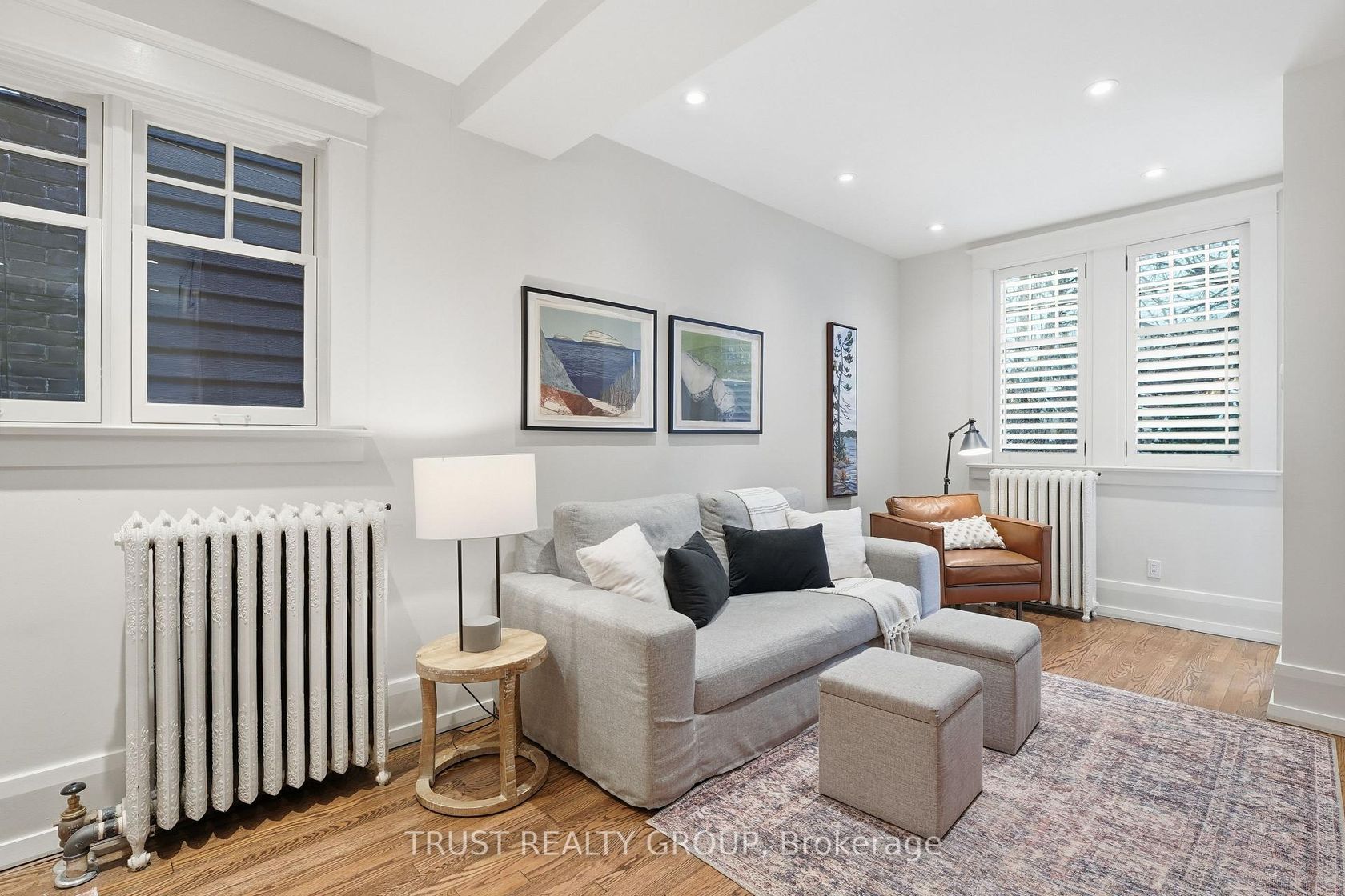 Beautifully updated Roncesvalles home offering space, comfort, and versatility across four finished levels. An enclosed front porch welcomes you into a charming foyer. California shutters and hardwood floors throughout. The main level features a formal living room with wood-burning fireplace, a separate dining room and a large eat-in designer kitchen with stainless steel appliances. At the rear of the home, a bright open-concept family room with custom built-ins provides walkout access to a private, professionally landscaped backyard. The second floor offers three bedrooms, including a spacious primary retreat with two bay windows, wall-to-wall closet, air unit above the bed, and a 3-piece ensuite. A separate office and a deluxe 5-piece main bathroom complete this level, which can easily be converted to a Jack & Jill. The third floor includes two additional bedrooms, each with hardwood floors, built-in storage cabinetry, and their own air conditioning units, plus a full bathroom with heated floors. The basement was renovated in the summer of 2025 and features a euro-style 3-piece bathroom, large living/TV area with wet bar, engineered hardwood floors, abundant storage, laundry room with LG washer and dryer, workout/utility room, and a separate entrance. Heated floors in the basement and all bathrooms.
