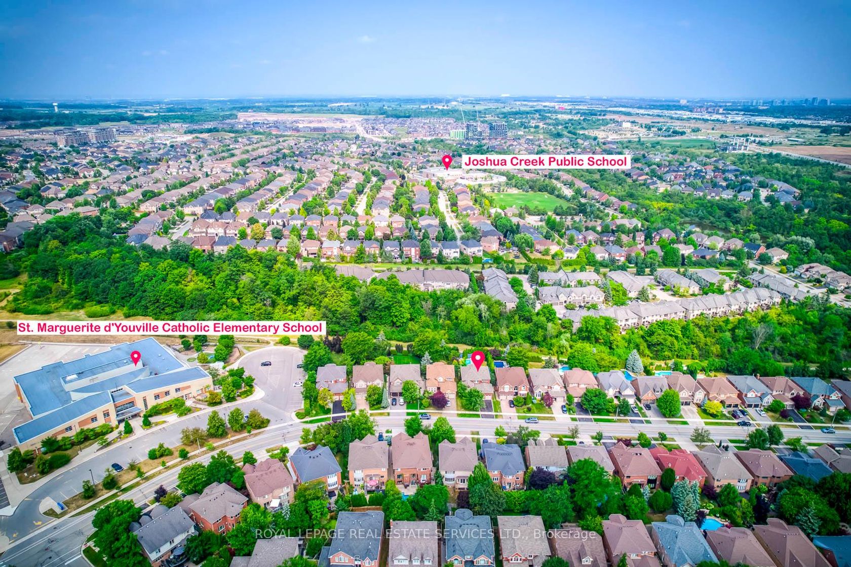 Stunning 4-Bedroom Family Home Backing onto Ravine in Prestigious Joshua Creek! This beautifully maintained 3,121 sq ft detached home offers 4 bedrooms and 4 bathrooms, situated on a premium ravine lot with breathtaking views. Enjoy spectacular sunsets from your private deck overlooking a beautifully landscaped backyard oasis with a pool, mature trees, and complete privacy. The main level is thoughtfully designed for comfortable family living-featuring a spacious dining room perfect for gatherings, a bright living room with vaulted ceilings and impressive windows, and a dedicated office for working from home.Upstairs, the large primary bedroom retreat offers a walk-in closet and a relaxing atmosphere, complemented by three additional spacious bedrooms and a beautifully renovated main bath.The walk-out basement provides fantastic extra living space with a generous rec room, bar, game area, full bath, and ample storage-ideal for entertaining or relaxing after a summer swim. Recent upgrades include stylish new flooring and upgraded stair finishes (2022), an owned hot water heater (2022). Located in the highly desirable Joshua Creek community, within top-rated school zones (Joshua Creek PS & Iroquois Ridge HS), and complete with a double garage, this home is the perfect blend of space, comfort, and location.