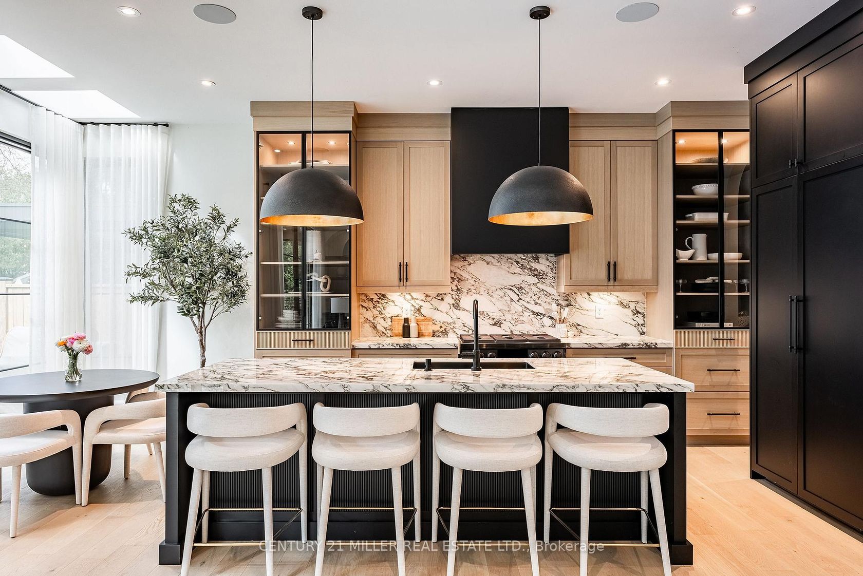 Located in one of Oakville's most desirable pockets this new custom home creates a stylish atmosphere that will impress even the most detailed buyer. Architecture by Hicks Design Studio and built by Gasparro Homes this home features over 3,100 square feet above grade as well as a rare double car garage. The transitional design layered with soft textures and high-end light fixtures make it the ultimate retreat! The foyer provides a clean sightline through the rear of the home which highlights the near floor to ceiling windows. Double metal French doors, with beveled privacy glass, lead you into the home office with wall-to-wall cabinetry. From the dining room, walk through the butlers pantry into the open concept kitchen and family room. The kitchen, by Barzotti Woodworking, is extremely functional and features white oak cabinetry with black/glass accents, an oversized island, and cozy breakfast nook. The second level of this home has a bright and airy feel with gorgeous skylights and semi-vaulted ceilings in every room allowing for extended ceiling heights. The primary suite spans the rear of the home with stylish ensuite and large walk-in closet with custom organizers. Two additional bedrooms share access to a jack-and-jill washroom. The final bedroom upstairs enjoys its own private ensuite and has a walk-in closet. The lower level of this home features 10ft ceilings and radiant in floor heating. The recreation room, with custom wet bar overlooks the glass enclosed home gym. A fifth bedroom along with full washroom is also found on this level. This level is finished off with a cozy home theatre. This home also features two furnaces and two air conditioners for ultimate home comfort. The private rear yard is freshly landscaped with a full irrigation system as well as landscape lighting. The back patio features retractable screens and naturally extends the indoor living space. The ultimate turn-key package.